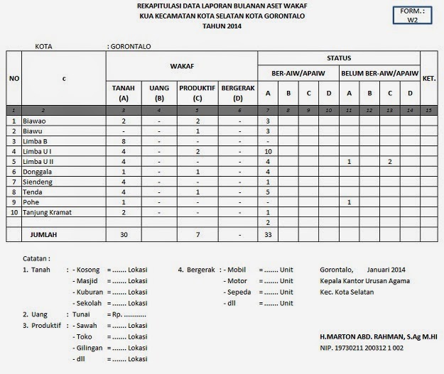 KUA Kecamatan Kota Selatan Kota Gorontalo Rekap Data Lapbul Aset Wakaf