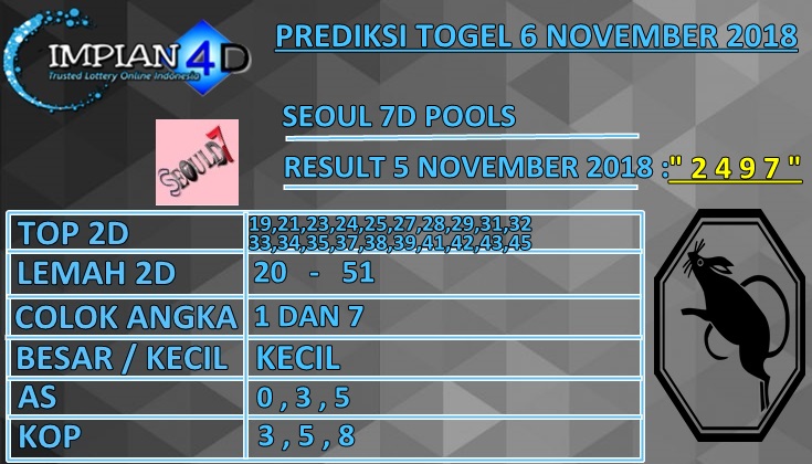 PREDIKSI TOGEL SEOUL 7D POOLS SELASA 6 NOVEMBER 2018 IMPIAN 4D