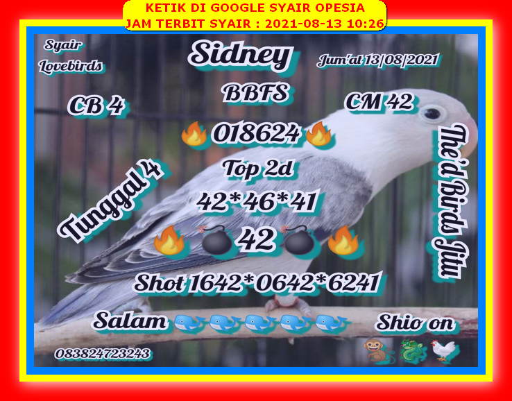 Kode Syair Togel Sydney adalah ramalan atau prediksi togel Sydney dengan menggunakan gambar yang berisi kata kata syair menggambarkan keadaan dan situasi yang terjadi. Syair Sydney Tercepat Hari Ini Jumat 19-02-2021 Kumpulan Syair Sydney Tercepat Hari Ini Syair Sy. Toto kuda lari adalah sebuah angka. Demikianlah Prediksi Keluaran Togel Sydney Rabu 18 Agustus 2021 untuk siang hari ini.. Master syair sdy 3 mei 2021 Pengeluaran Sidney 3-5-2021 Keluaran Sydney. Ramalan Dan Prediksi Data Sydney Dengan Angka.