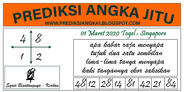 Prediksi Angka Jitu Togel Singapore Minggu 01 Maret 2020 PREDIKSI ANGKA